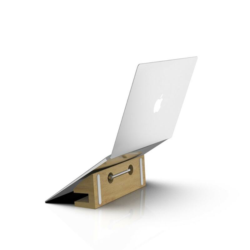 Le support de bureau arbore un élégant design en bois DIROSE spécialement conçu pour MacBook.