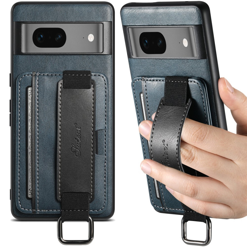 Une super coque munie d'une sangle qui sert de support, d'un anneau et d'un porte-carte pour votre Google Pixel 7A.