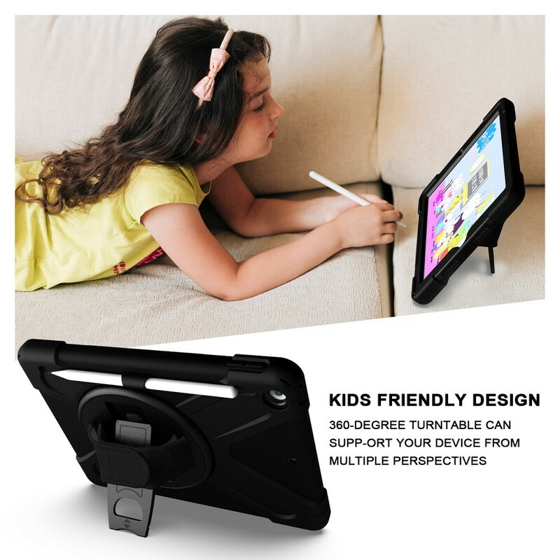 Une super coque conçue spécialement pour les enfants qui utilisent le iPad 10.2" (2021) (2020) (2019) : elle protège la tablette et sert de support mains libres et est munie d'une sangle.