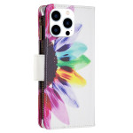 Cette housse pour iPhone 16 Pro est dotée d'un motif imprimé unique et d'un portefeuille à fermeture éclair.