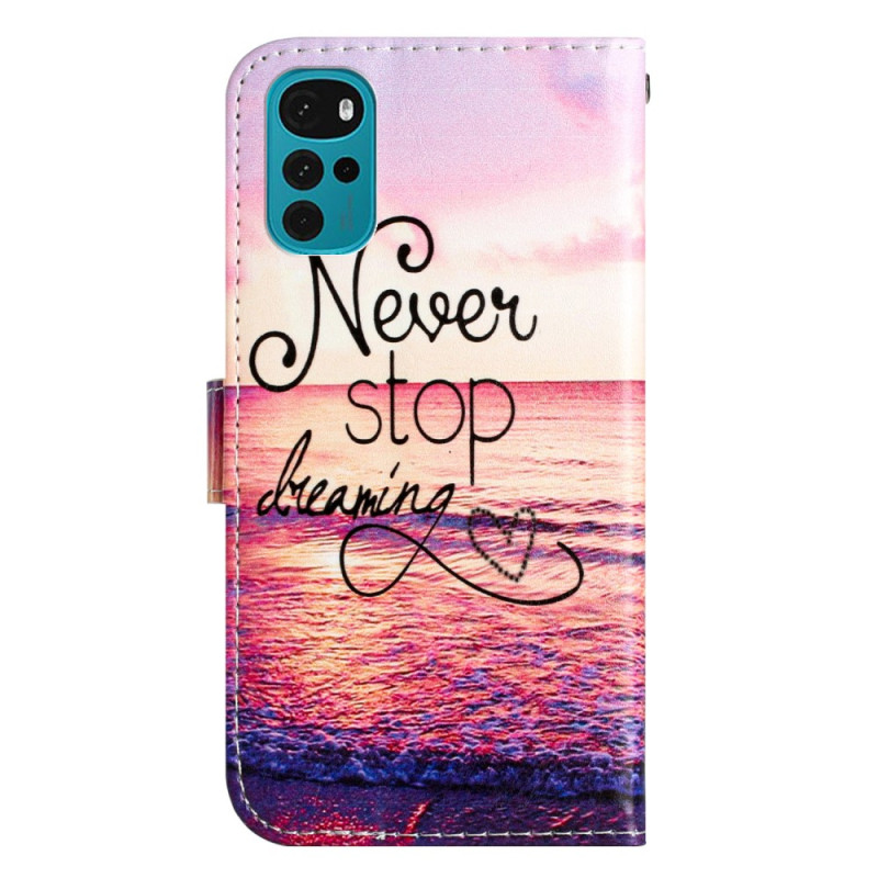 Votre Moto G22 est merveilleusement protégé avec cette housse Never Stop Dreaming qui vient avec une lanière.