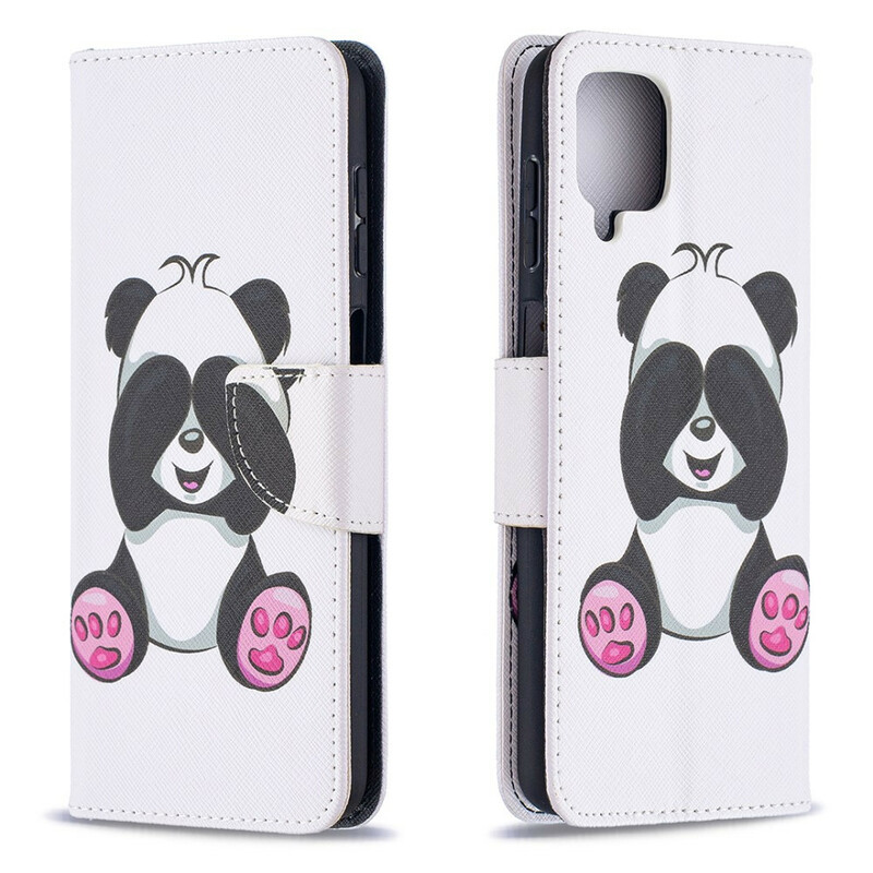 Un panda fun sur une housse de style portefeuile pour protéger votre Samsung Galaxy A12 / M12 avec talent.