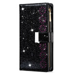 Une super housse pour le Samsung Galaxy A51 à paillettes avec de nombreux porte-cartes et une poche avec zip pour y mettre de la monnaie ou comme fourre-tout.