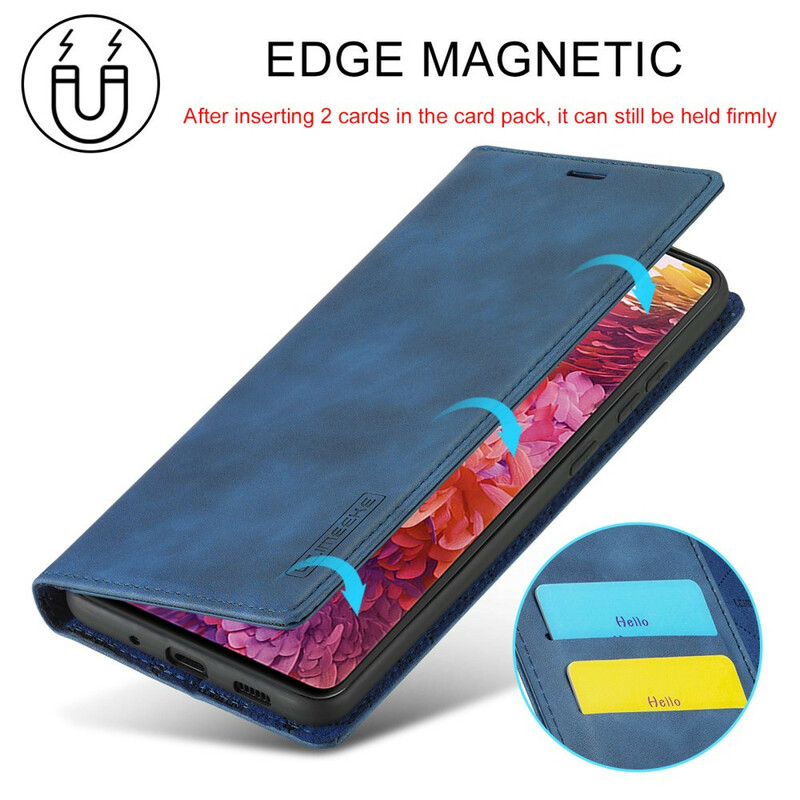 La flip cover effet cuir, conçue par LC.IMEEKE est parfaite pour protéger votre Samsung Galaxy S20 FE.