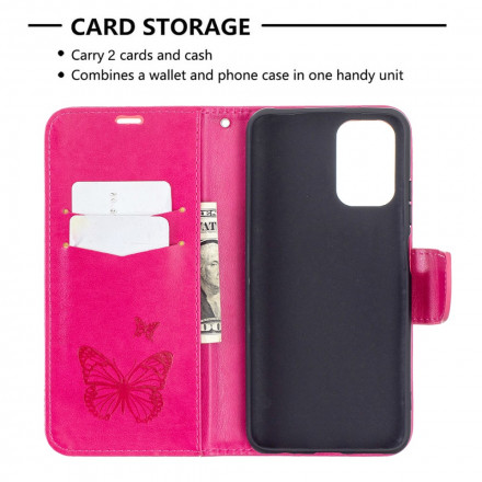 La housse en simili cuir Papillons imprimés vient avec une lanière pratique pour transporter le Xiaomi Redmi Note 10/Note 10s/Poco M5s.