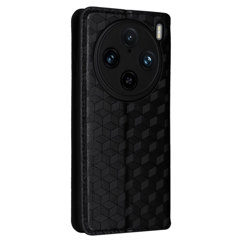 Étui portefeuille élégant avec fermeture magnétique pour vivo X100 Pro 5G. Design sophistiqué en relief 3D, fonction support mains-libres et rangement pratique pour cartes et espèces. Protection complète à 360° contre les chocs et rayures.