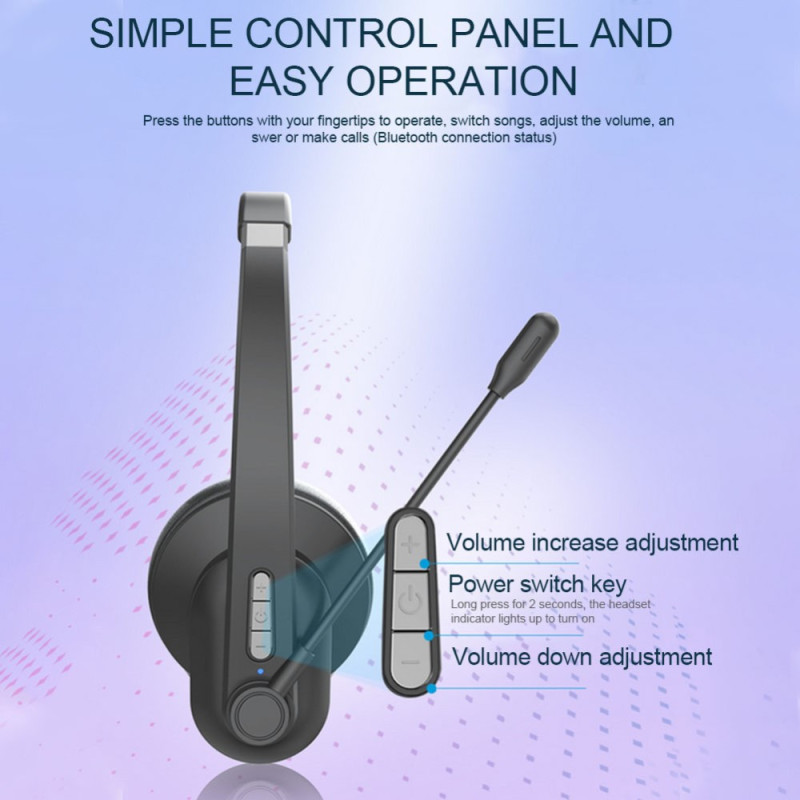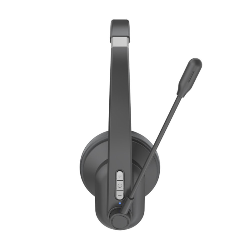 Ce casque avec microphone se connecte par bluetooth et est muni d'un contrôleur.