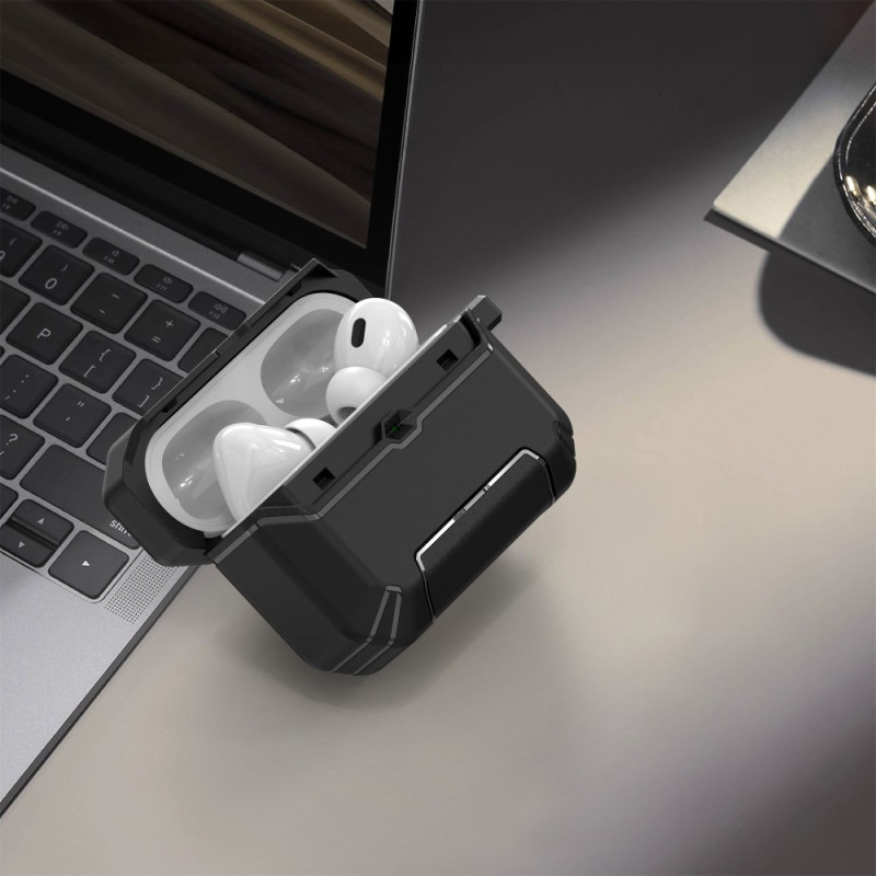 Protégez vos AirPods Pro 3 avec cet étui innovant doté d'un support pliable ingénieux. Le mousqueton intégré permet une fixation facile à vos sacs pour un transport sans souci. Compatible avec la charge sans fil et filaire.