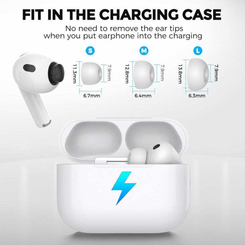 Embouts de remplacement (2 paires) en silicone premium pour AirPods Pro 3. Design ergonomique offrant un ajustement sûr et confortable avec protection anti-poussière intégrée. Améliore l'isolation phonique et la qualité sonore.