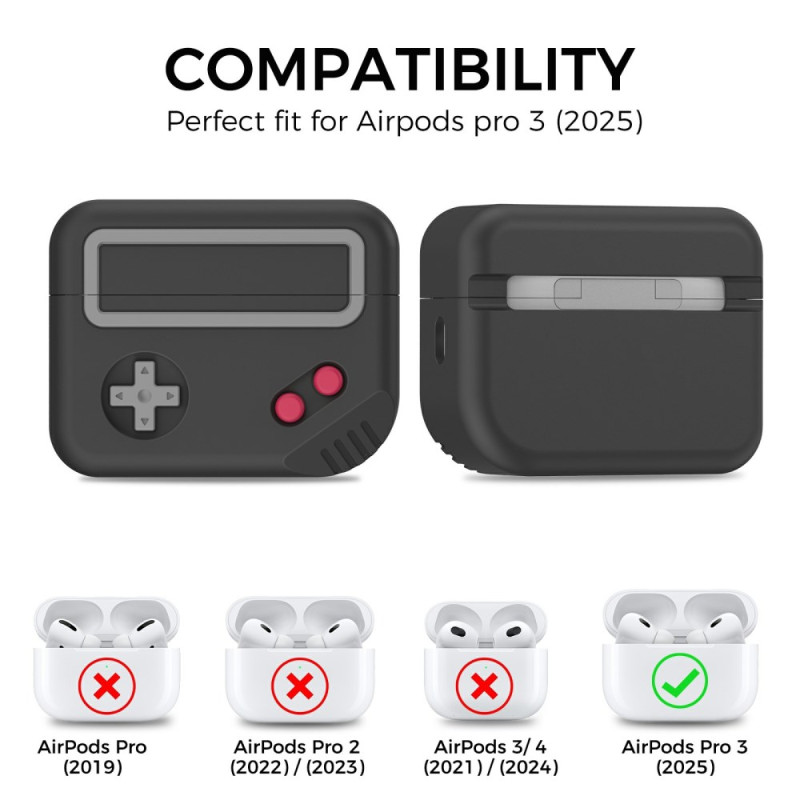 Protégez vos AirPods Pro 3 avec style grâce à cette coque en silicone au design nostalgique de console de jeu rétro. Fabriquée en silicone premium, elle offre une protection complète contre les chutes et les rayures tout en ajoutant une touche ludique à vos écouteurs.