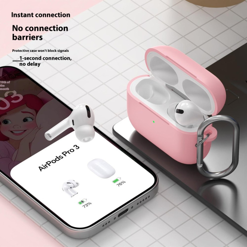 Protégez vos AirPods Pro 3 avec cet étui en silicone épais de 2,3mm. Protection intégrale contre les chocs et les chutes, compatible avec la recharge sans fil. Livré avec un mousqueton pratique pour un transport sécurisé au quotidien.