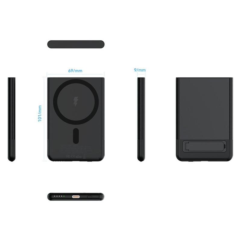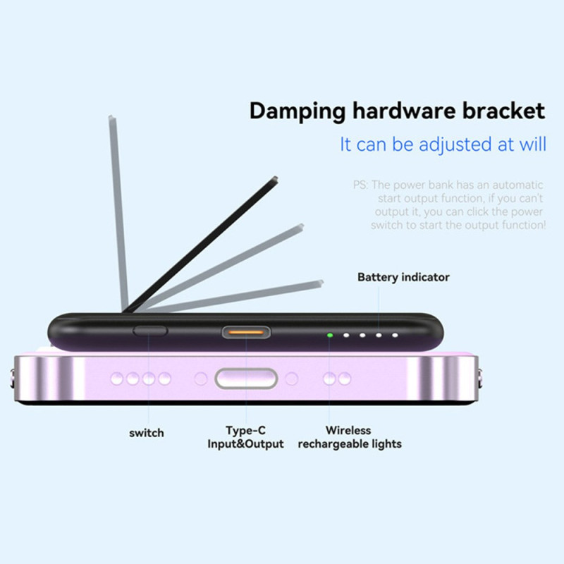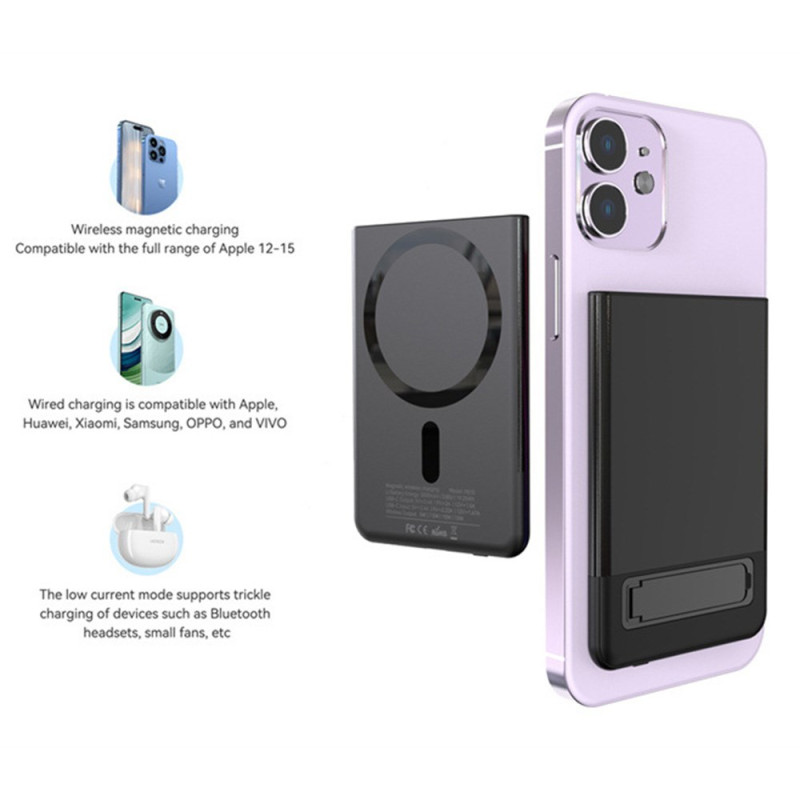 L'union parfaite de l'esthétique métallique et de l'efficacité sans fil est enfin là. Conçue pour une portabilité maximale, cette Batterie Externe 5000mAh arbore un profil ultra-mince de 9 mm. Son boîtier en métal est un gage de durabilité et offre un look haut de gamme. Elle intègre une charge sans fil rapide jusqu'à 15W, vous permettant de recharger efficacement votre appareil sans câble. Le support intégré est idéal pour une utilisation mains libres en mode charge. Avec sa puissance de 5000mAh, elle est l'appoint d'énergie idéal pour une journée bien remplie.