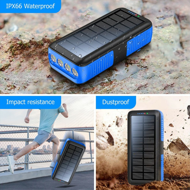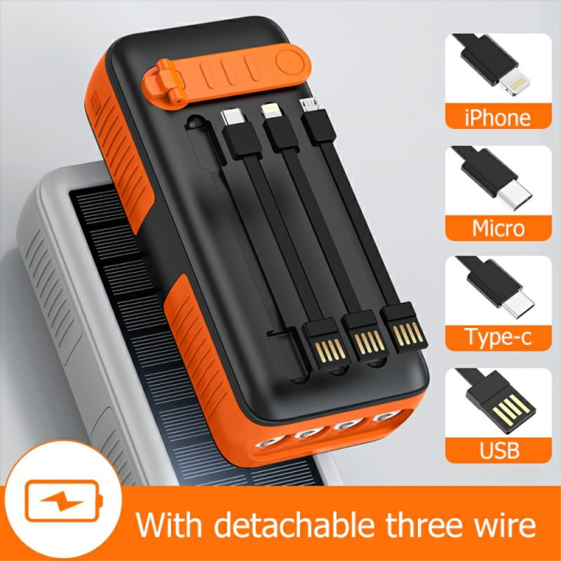 Lorsque l'accès à l'électricité n'est pas garanti, cette Batterie Externe devient un équipement de survie essentiel. Dotée d'une capacité massive de 30000mAh, elle est conçue pour les longues expéditions et les situations d'urgence. Sa double méthode de recharge unique – solaire et manivelle – assure une autonomie constante, même hors réseau. Certifiée IP66, elle est solide, durable et résiste aux projections d'eau et à la poussière. Pour la sécurité, elle intègre une puissante lampe torche à 4 LED avec mode SOS. De plus, les trois câbles détachables (Lightning, Type-C, Micro) éliminent le besoin de transporter des accessoires supplémentaires, offrant une polyvalence maximale.