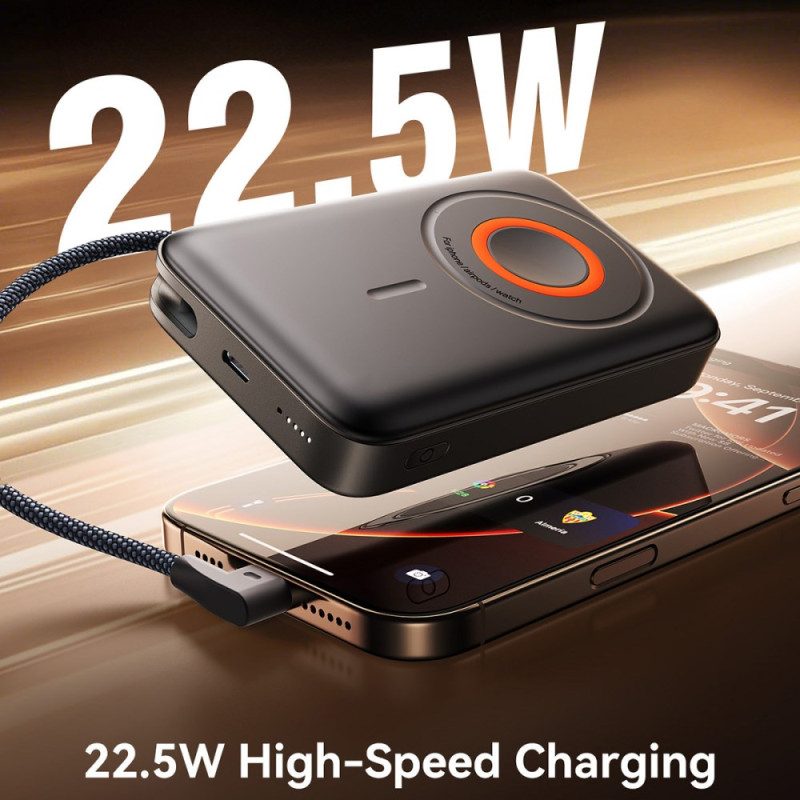 Conçue pour offrir une solution d'alimentation intégrée et sécurisée, cette Batterie Externe JOYROOM 3-en-1 redéfinit la commodité en déplacement. Avec sa capacité de 10000mAh, elle assure près de deux recharges complètes pour les modèles phares. Elle délivre une puissance de charge super rapide de 22.5W, que ce soit via son port Type-C ou son câble intégré, et supporte la charge sans fil 15W. Sa fixation magnétique de 13N garantit une connexion stable. Le support anneau rotatif à 360° facilite le transport et le visionnage mains libres. Ce modèle intègre 9 couches de protection et est conforme aux exigences de l'aviation pour un transport sécurisé.