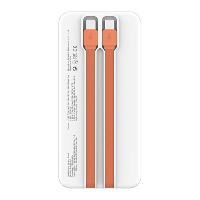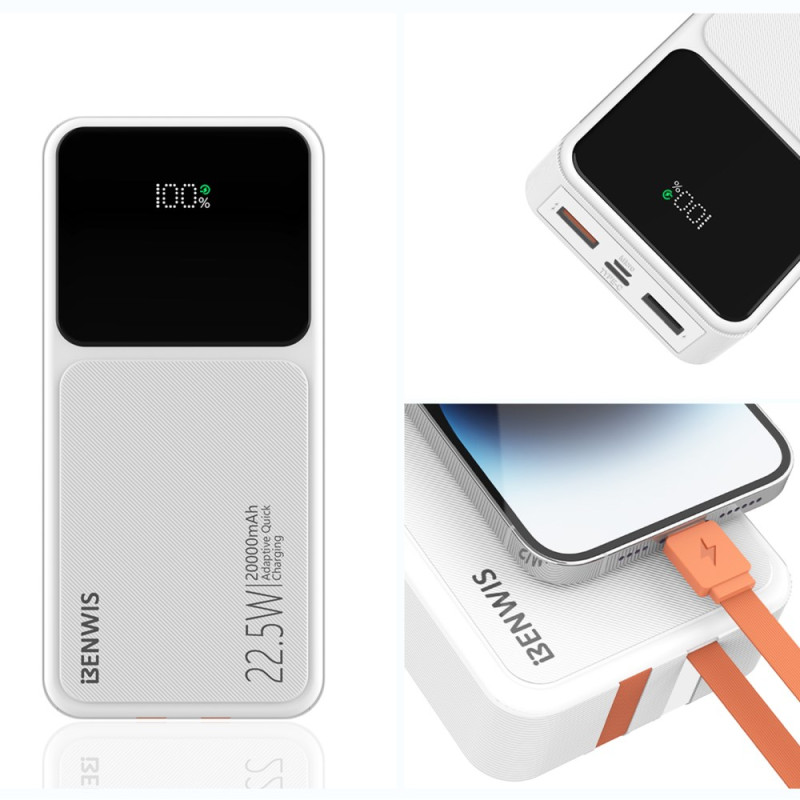 L'accès instantané à l'énergie pour tous les dispositifs est la priorité de cette Batterie Externe BENWIS, conçue pour l'efficacité organisationnelle. Dotée d'une capacité de 20000mAh, elle garantit de multiples recharges. Le design intègre des câbles USB-C et Lightning, éliminant le besoin de transporter des fils supplémentaires. La puissance de sortie atteint 22.5W, assurant une charge rapide via les ports et le câble intégré Type-C. Son système de gestion intelligent protège la santé des appareils connectés. L'affichage LED précis vous maintient informé de l'autonomie, et l'ensemble est conforme aux normes de sécurité européennes.