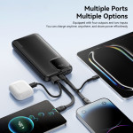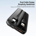 L'autonomie absolue et l'organisation sans faille sont réunies dans cette Batterie Externe ESSAGER 20000mAh. Cette unité de haute capacité garantit de multiples recharges pour l'ensemble de vos dispositifs, sans le désagrément des câbles externes grâce à ses deux câbles intégrés (Type-C et Lightning). Elle délivre une puissance de charge ultra-rapide jusqu'à 22.5W, assurant une alimentation efficace via le port USB-A et le câble Type-C. Sa configuration polyvalente permet de charger jusqu'à quatre appareils simultanément. L'écran LED intelligent affiche en temps réel le niveau de batterie restant, et le dispositif est certifié CE et RoHS pour le marché européen.