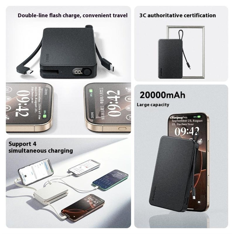 Outil de productivité essentiel, cette Batterie Externe MOMAX est le hub d'alimentation ultime pour les professionnels en déplacement. Sa capacité colossale de 20000mAh garantit une autonomie prolongée pour tous vos dispositifs. Elle délivre une puissance de charge maximale de 30W, assurant un rechargement ultra-rapide. L'intégration de deux câbles USB-C élimine la dépendance aux fils externes, offrant une solution complète et ordonnée. Avec ses quatre sorties disponibles, elle permet la charge simultanée de quatre appareils. Le boîtier en PC+ABS assure une grande durabilité.