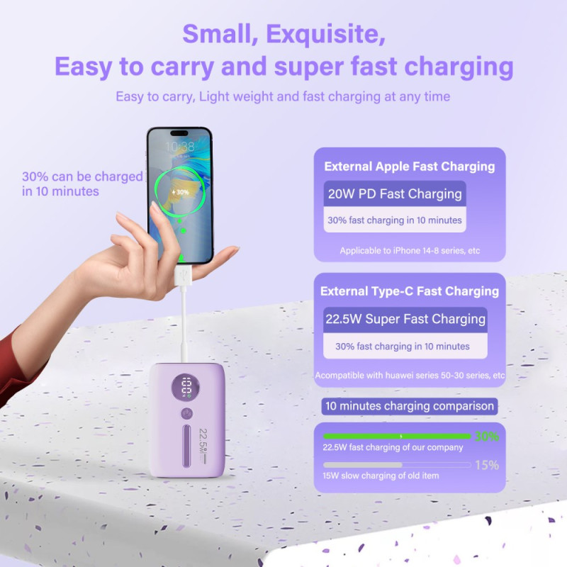La performance et la longévité de votre batterie sont assurées, car ce dispositif ROISKIN intègre une gestion thermique de pointe. Cette Batterie Externe 10000mAh, au design raffiné et ultra-portable, est idéale pour les déplacements fréquents. Elle délivre une puissance de charge rapide jusqu'à 22.5W (via USB-A), permettant une alimentation efficace de vos dispositifs. Le contrôle intelligent de la température garantit une charge à basse température en temps réel. L'affichage numérique remplace les voyants traditionnels pour une lecture précise et professionnelle de l'autonomie restante. Le tout est sécurisé et conforme aux normes européennes CE et RoHS.