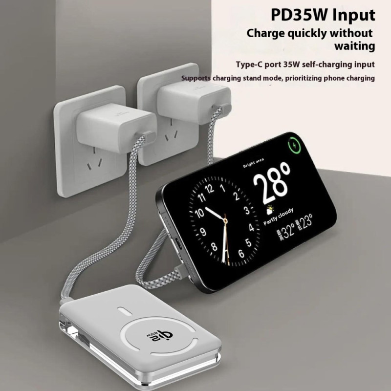 Cette batterie externe magnétique combine puissance et praticité pour accompagner tes déplacements. Grâce à la technologie Qi2.2, elle offre une charge sans fil rapide jusqu’à 25W, tandis que ses ports Type-C permettent une charge filaire jusqu’à 35W pour les appareils compatibles. Son support intégré facilite l’usage du téléphone en mode mains libres pendant la recharge. Avec sa capacité de 10000mAh et son format compact, elle reste facile à transporter, et son écran digital assure un suivi clair du niveau d’énergie.
