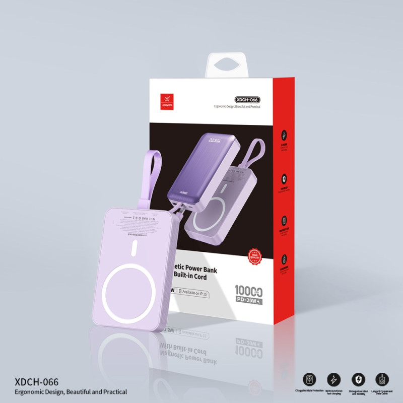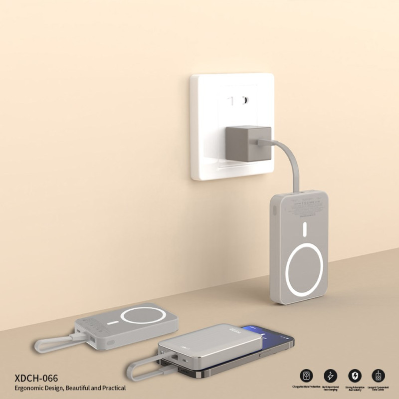 Cette batterie externe magnétique combine puissance et polyvalence pour accompagner ton smartphone partout. Sa capacité de 10000mAh offre une réserve d’énergie confortable, tandis que la charge rapide 22,5W assure un ravitaillement efficace des appareils compatibles. La fixation magnétique garantit un maintien fiable pendant la charge sans fil. Grâce aux sorties USB-A, Type-C et au câble intégré, elle permet d’alimenter plusieurs appareils à la fois, le tout dans un format pratique avec indicateur lumineux pour suivre le niveau de batterie.