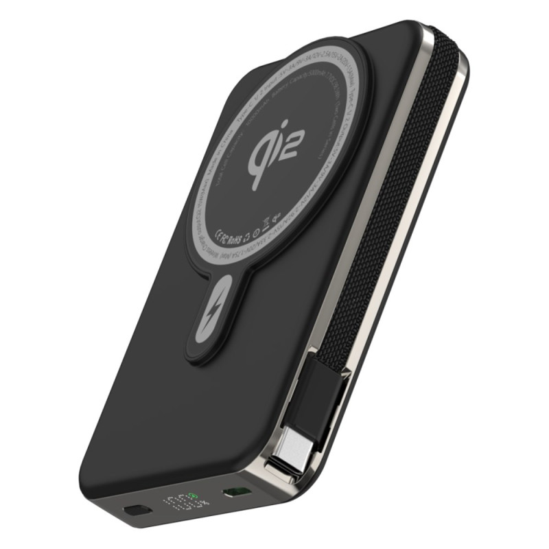 Cette batterie externe magnétique associe puissance et polyvalence dans un format compact conçu pour le quotidien. Grâce à la technologie Qi2, elle offre une charge sans fil rapide jusqu’à 15W, tandis que ses ports Type-C permettent une charge filaire allant jusqu’à 35W pour les appareils compatibles. Sa capacité de 10000mAh assure plusieurs recharges, et son support intégré rend l’usage plus confortable, même en déplacement. L’écran digital facilite le suivi du niveau d’énergie, et le câble intégré garantit une utilisation immédiate sans accessoire supplémentaire.
