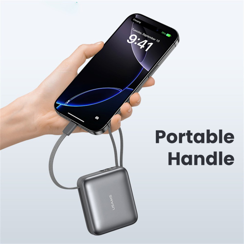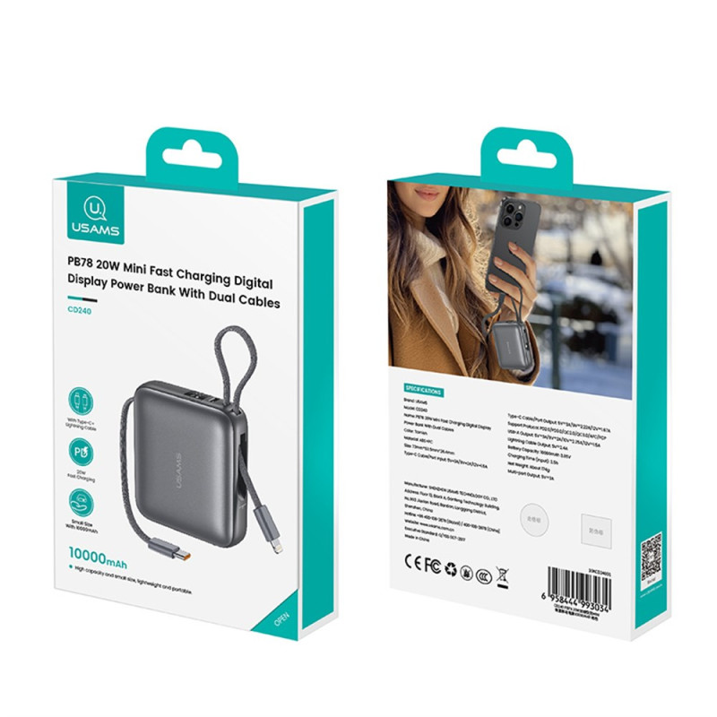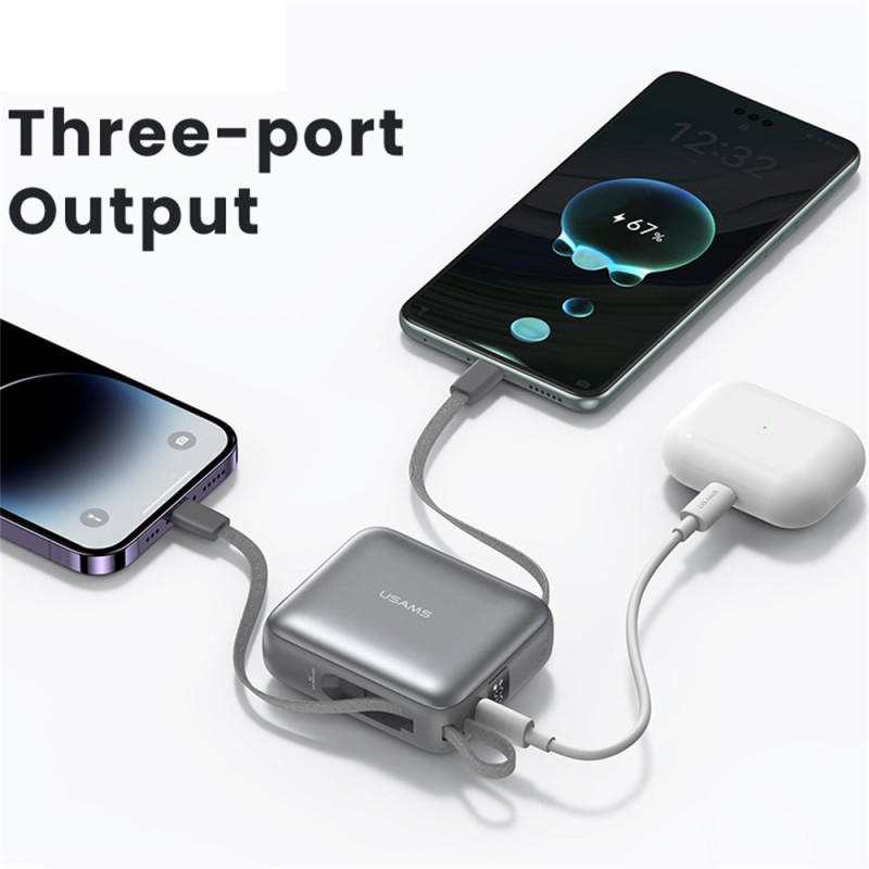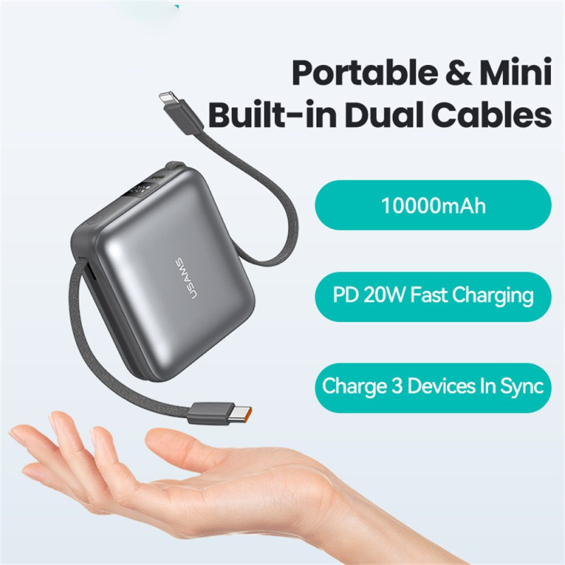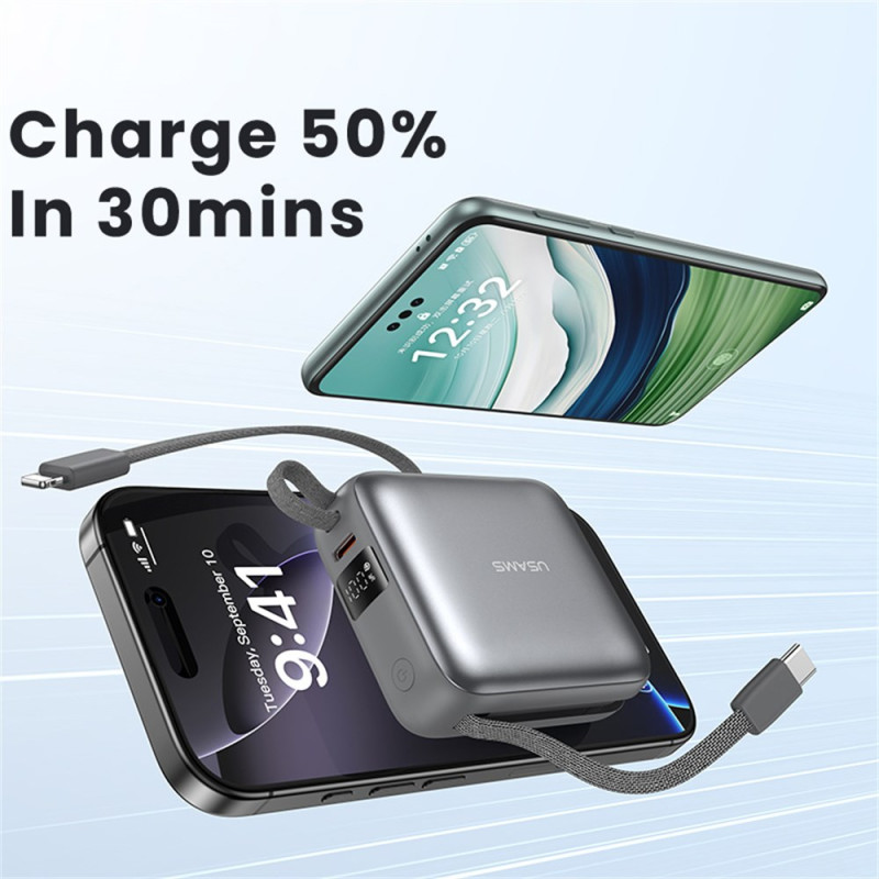 Cette batterie externe USAMS combine puissance et praticité dans un format compact pensé pour accompagner tous les déplacements. Sa capacité de 10000mAh offre plusieurs recharges, tandis que la technologie 20W assure une alimentation rapide et sûre pour les appareils compatibles. Les câbles intégrés Type-C et Lightning évitent d’emporter des accessoires supplémentaires, et les trois ports disponibles permettent de charger plusieurs appareils simultanément. L’écran LED affiche clairement le pourcentage restant pour un suivi simple et immédiat.