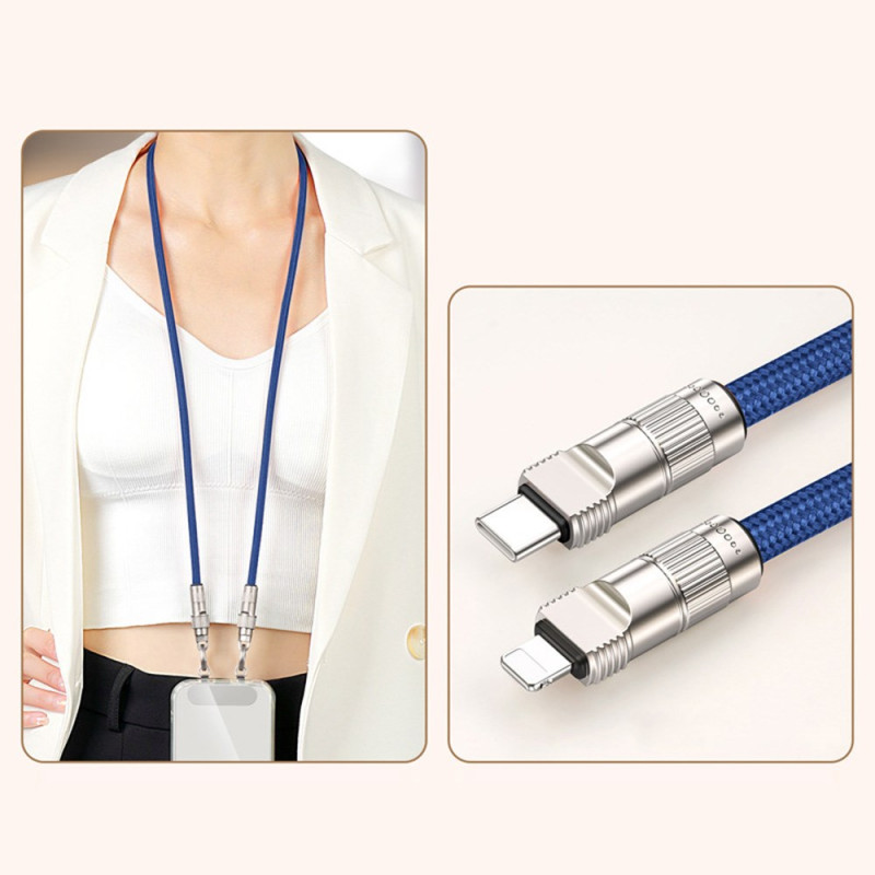 Découvrez notre câble de chargement innovant en forme de collier pour téléphone portable. Ce dispositif 2-en-1 combine praticité et efficacité, offrant une solution de charge rapide de 27W et une fonction de transport pratique.