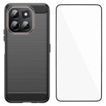 Protégez votre Honor X6c 4G avec cette coque élégante en TPU et son film en verre trempé inclus. Design texturé effet brossé et fibre de carbone pour un look moderne et sportif. Protection complète avec rebords surélevés pour l'écran et la caméra.