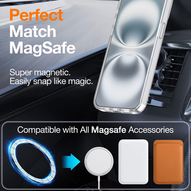 1. Compatible MagSafe : Anneau magnétique intégré pour un alignement stable, compatible avec la charge sans fil MagSafe et les accessoires magnétiques