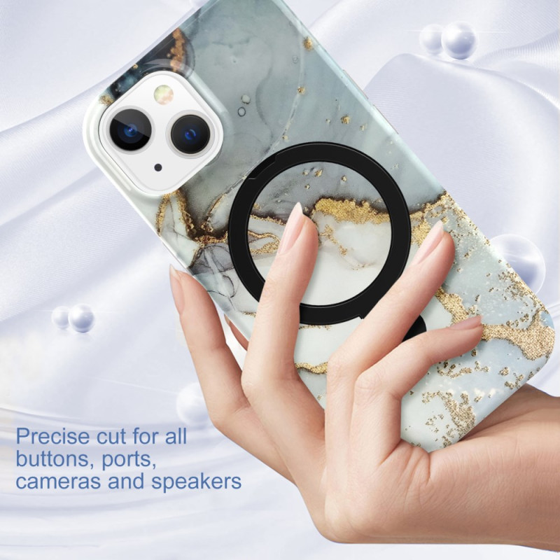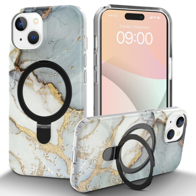 Coque iPhone 15 Magafe Anneau-Support Marbre