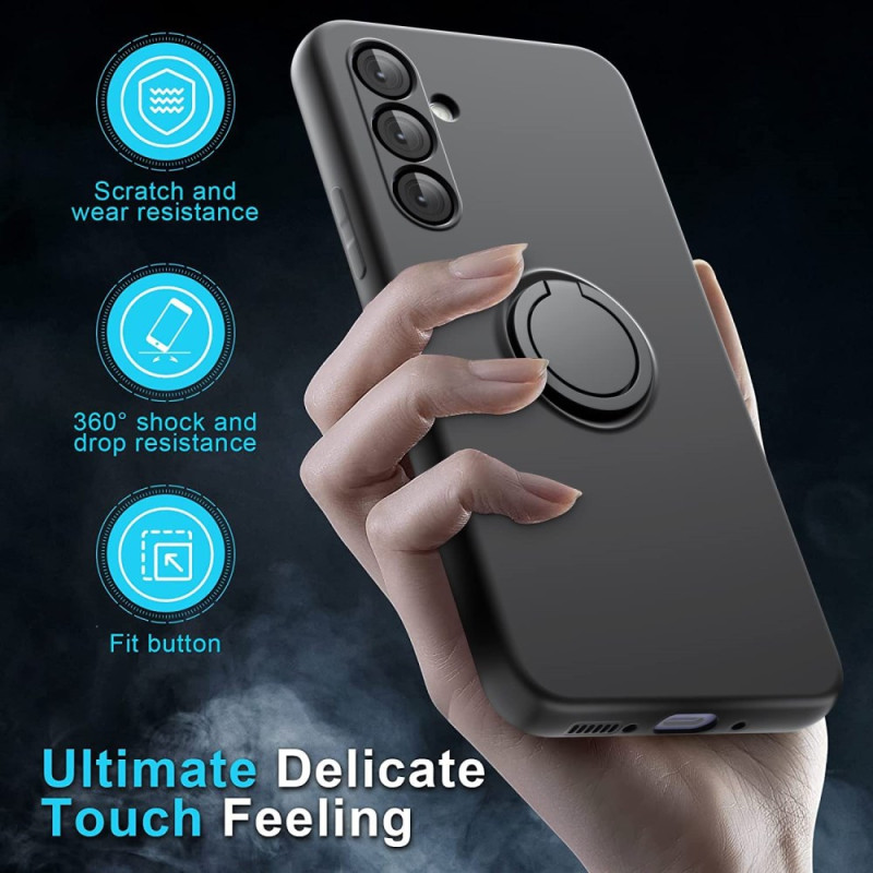 Protégez votre Samsung Galaxy A57 5G avec cette coque premium en silicone liquide écologique. Dotée d'une béquille pivotante pratique et d'une plaque métallique intégrée pour support magnétique, elle offre une protection complète avec film en verre trempé 2.5D inclus.