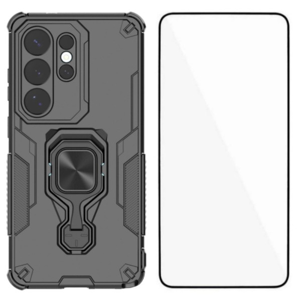 Protection complète pour votre Samsung Galaxy S26 Ultra. Cette coque robuste combine PC rigide et TPU souple pour une défense optimale contre les chocs. Comprend un support pliable pratique et un protecteur d'écran en verre trempé.