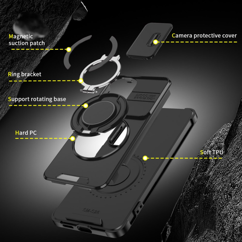 Protégez votre Samsung Galaxy S26 avec cette coque magnétique multifonction. Dotée d'un cache caméra coulissant, d'une béquille rotative et d'un film en verre trempé inclus, elle allie protection maximale et praticité au quotidien.