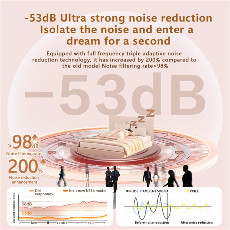 Les écouteurs HTC TWS Bluetooth 6.0 proposent une écoute ouverte permettant de rester attentif à l’environnement tout en profitant d’un confort durable. L’algorithme AURA Voice renforce les fréquences médiums et aiguës pour mettre en valeur les voix et offrir une atmosphère sonore claire et précise. Le microphone haute sensibilité associé à l’ENC réduit efficacement les bruits de vent pour des appels fluides. L’autonomie d’environ 4,5 heures et la recharge rapide assurent une utilisation continue, tandis que les commandes tactiles facilitent l’accès aux modes musique et jeu.