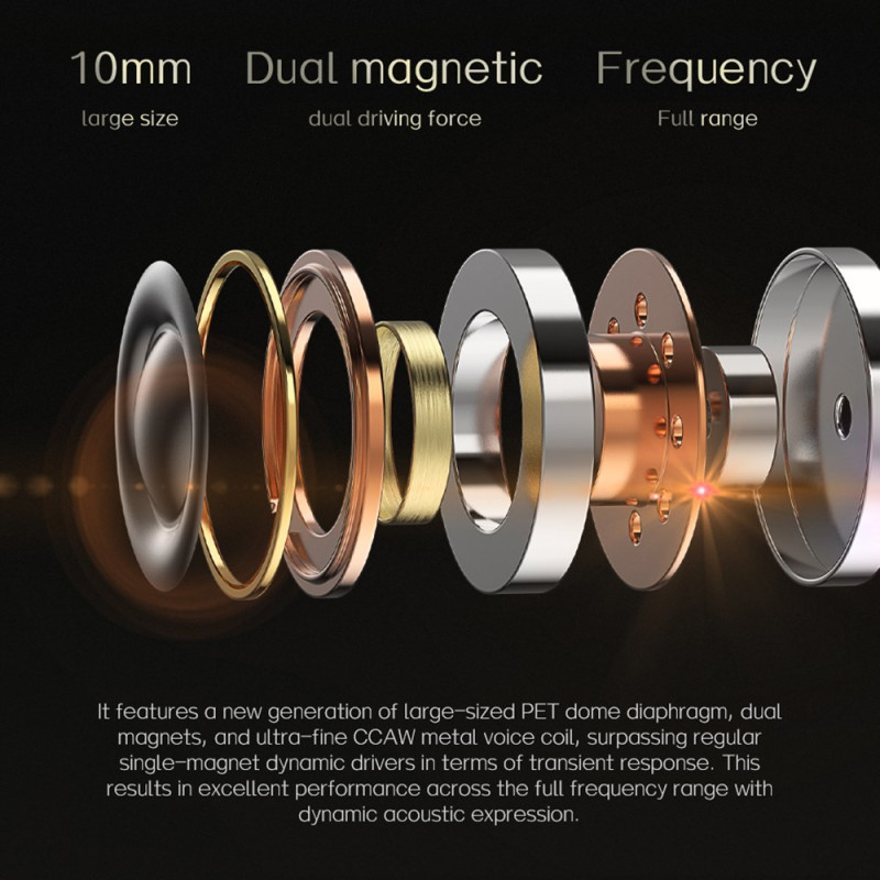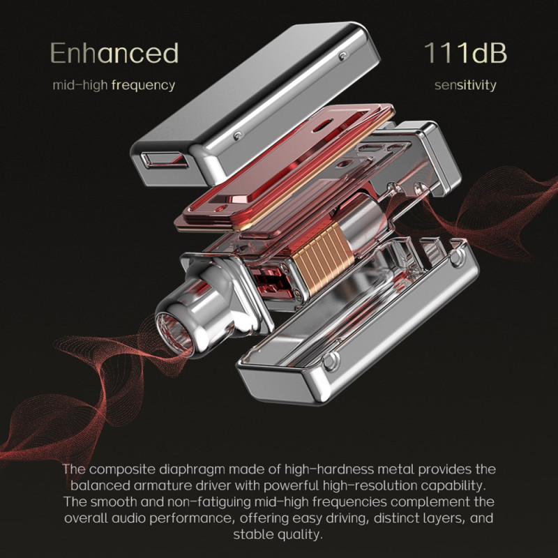 Les écouteurs ND Nice associent un driver dynamique à large diaphragme et un transducteur à armature équilibrée, afin de couvrir une bande passante étendue tout en assurant une reproduction sonore précise et expressive. Leur chambre acoustique 3D imprimée permet d’optimiser les flux internes pour un rendu stable, ample et détaillé. Le réglage acoustique privilégie la clarté vocale, offrant une écoute chaleureuse et équilibrée. La faceplate en alliage de zinc, mise en forme par moulage et finition miroir, assure robustesse et esthétique. L’interface 2-pin 0,75 mm permet le remplacement du câble ou une éventuelle évolution vers un module Bluetooth.