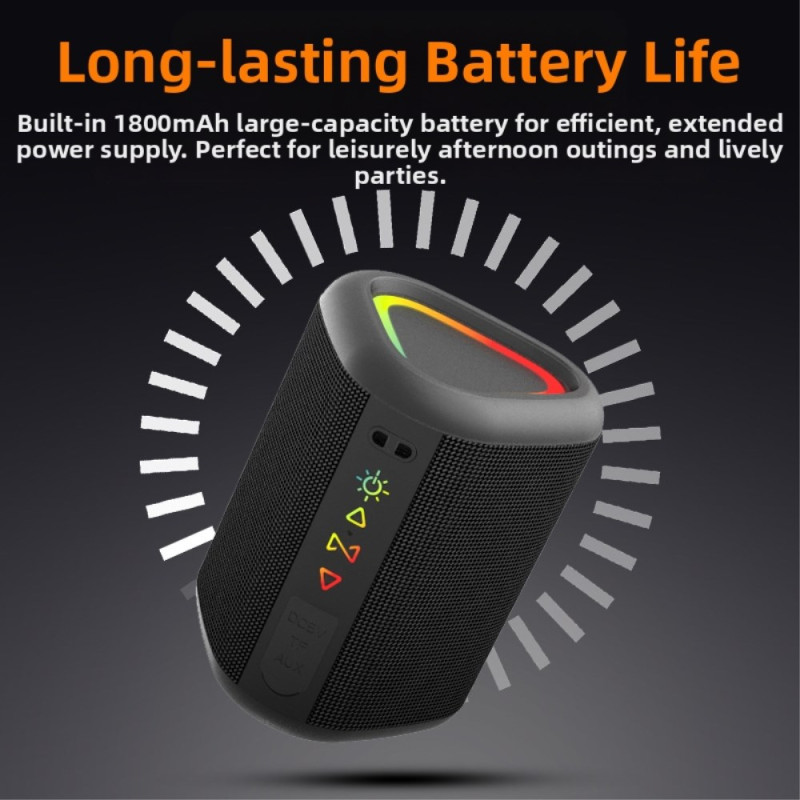 Découvrez l'enceinte portable CYBORIS S1 avec Bluetooth 5.3, son puissant de 15W et certification IPX6 étanche. Profitez d'un éclairage RGB dynamique qui s'harmonise avec votre musique, d'une autonomie jusqu'à 8 heures et de multiples options de connectivité (Bluetooth, AUX, carte TF, TWS). Compacte et légère, elle vous accompagne partout pour des moments musicaux inoubliables.