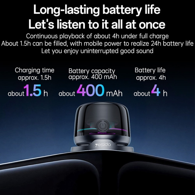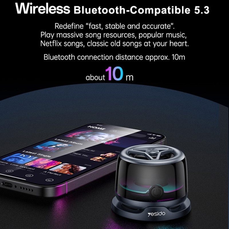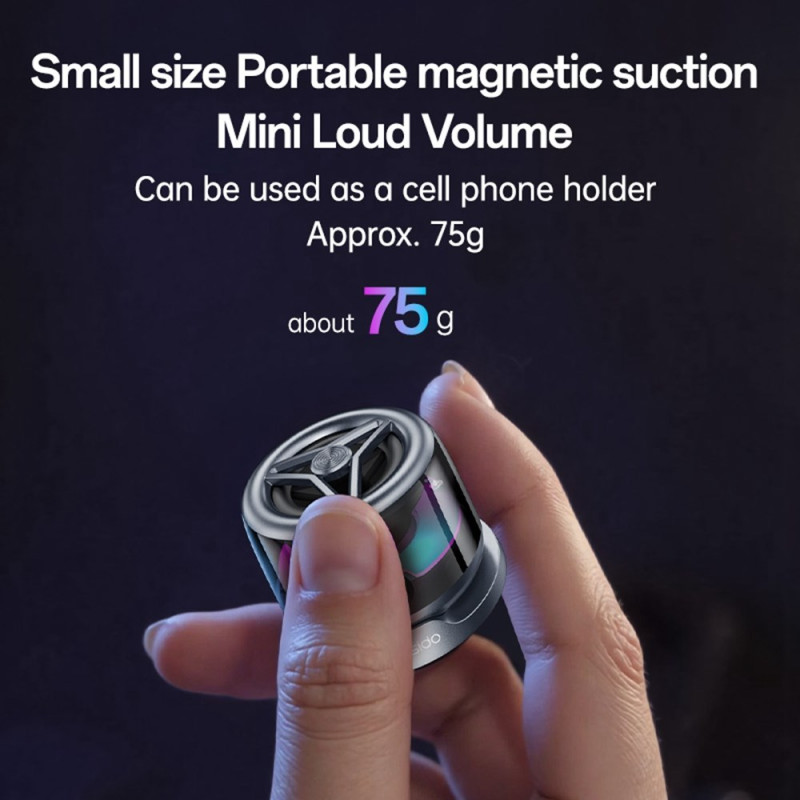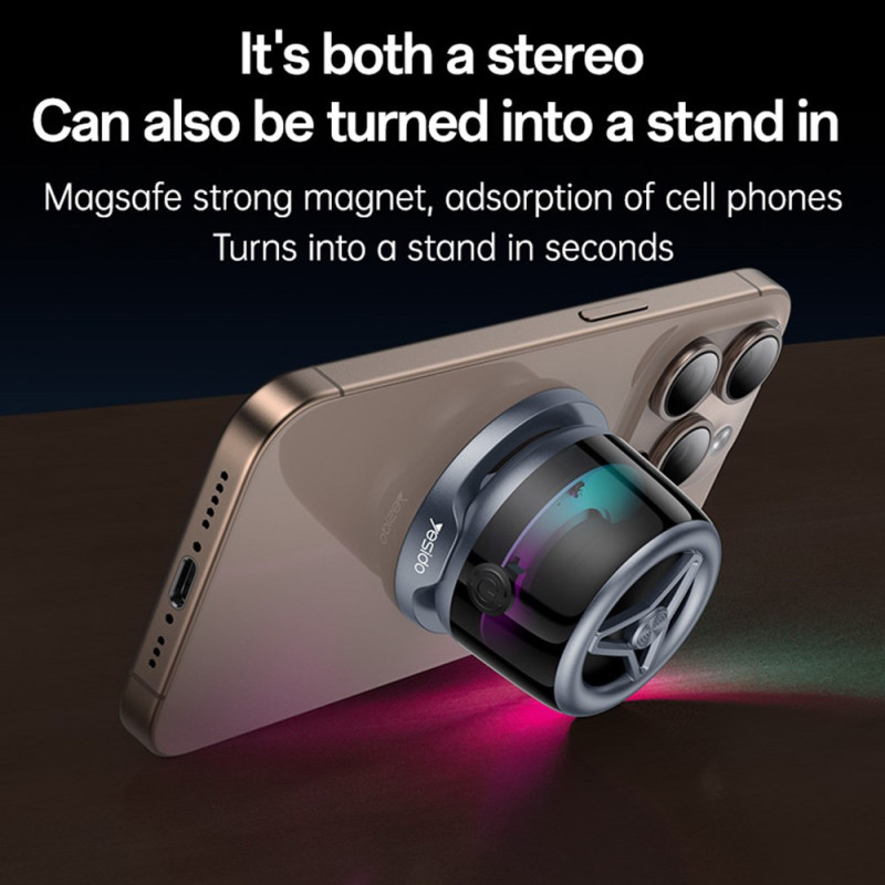 Découvrez le mini haut-parleur YESIDO : son puissant de 3W, Bluetooth 5.3, fixation magnétique et éclairage d'ambiance LED. Connectez deux unités en TWS pour un son stéréo immersif. Compact et portable, il s'attache à votre téléphone...