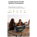 • Options de Lecture Polyvalentes : Choisissez parmi cinq modes de lecture différents : carte TF, Bluetooth, radio FM, clé USB ou entrée AUX, vous offrant plusieurs façons de profiter de votre musique, podcasts ou stations radio
