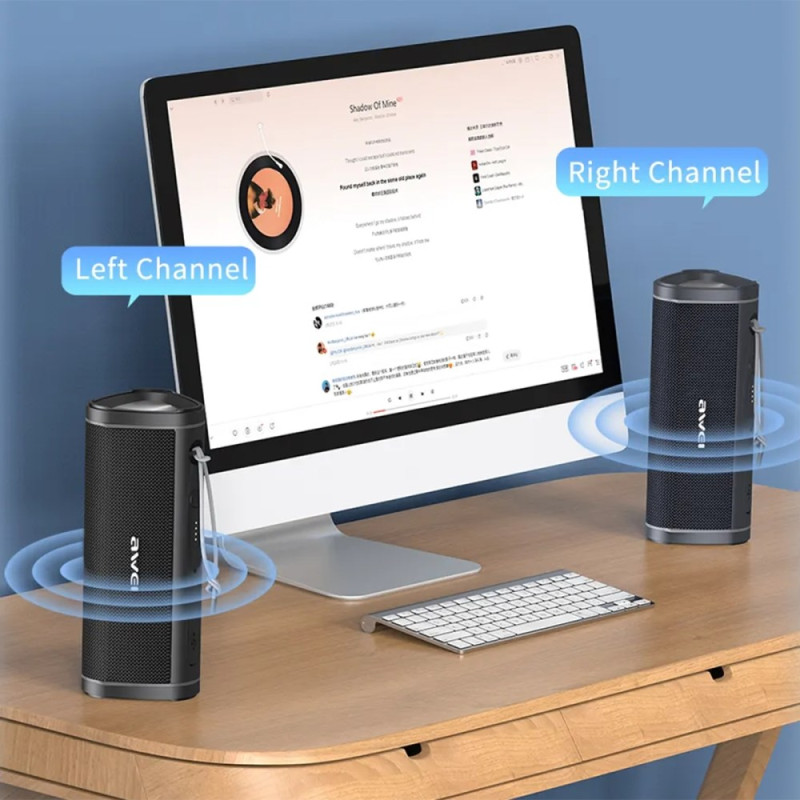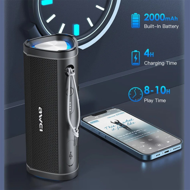 Profitez d'un son stéréo puissant avec l'enceinte Bluetooth AWEI Y331. Étanche IPX6, elle offre jusqu'à 10 heures d'autonomie, des appels mains libres avec microphone HD anti-bruit, et supporte plusieurs modes de lecture (Bluetooth, carte TF, AUX).