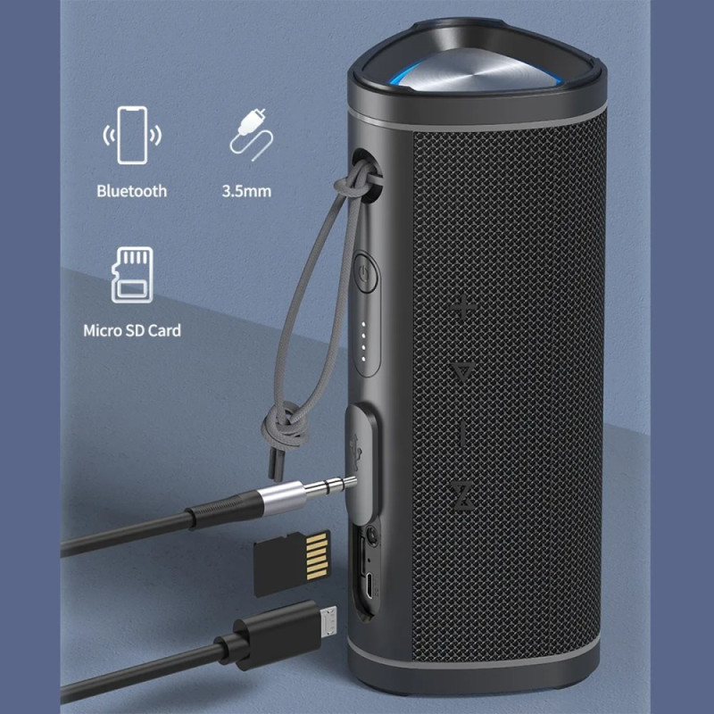 - Design Compact et Élégant : Conçue pour la portabilité, cette enceinte au design épuré et compact se transporte facilement partout. Parfaite pour un usage intérieur comme extérieur