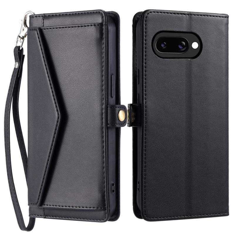 Étui portefeuille élégant pour Google Pixel 10A avec dragonne pratique et support ajustable. Dispose de 3 emplacements pour cartes et 1 compartiment pour espèces. Protection intégrale contre les rayures avec trou récepteur pour répondre aux appels sans ouvrir l'étui.