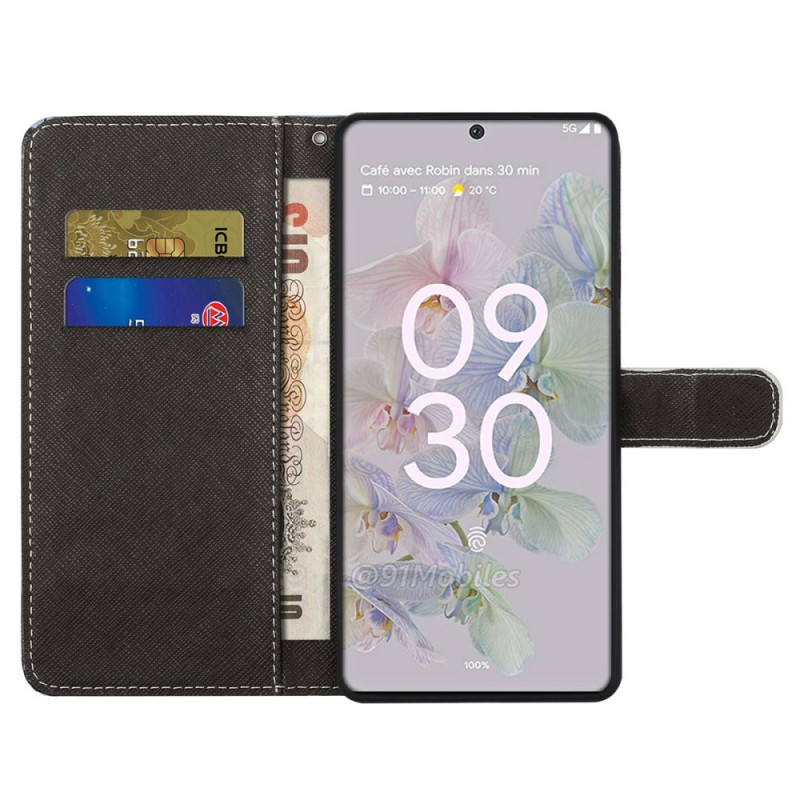 La housse Panda Espace, avec lanière, sécurise l'ensemble du Google Pixel 6A tout en servant de portefeuille.