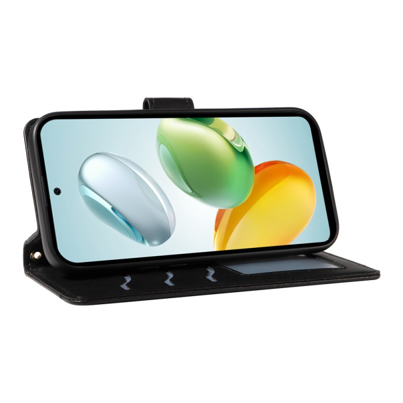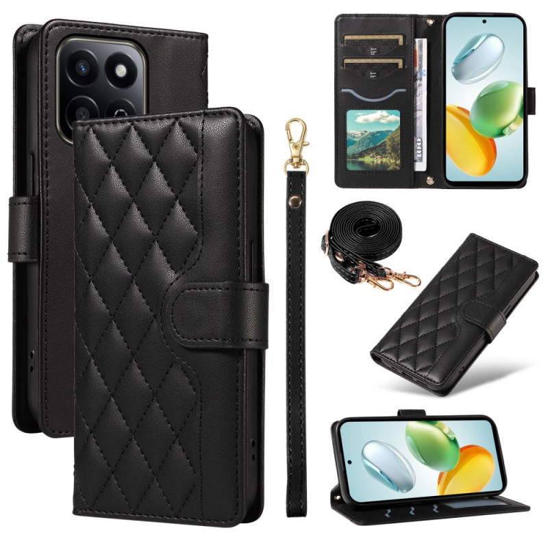 Étui portefeuille élégant avec motif losange pour Honor X7c 4G / 200 Smart 5G. Conception multifonctionnelle avec 3 emplacements pour cartes, poche pour billets et fonction support. Livré avec bandoulière et dragonne pour un transport pratique.