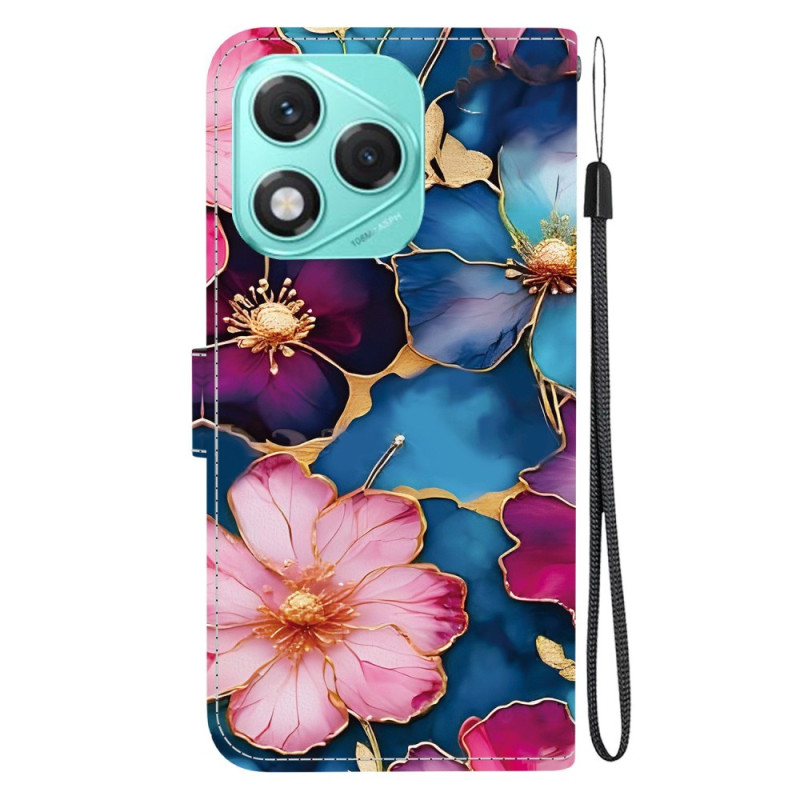 Protégez votre Honor 400 Lite 5G avec style grâce à cet étui portefeuille élégant orné d'un motif fleur bleu et or. Doté de compartiments pour cartes, d'un support intégré et d'une dragonne pratique, il allie fonctionnalité et raffinement au quotidien.