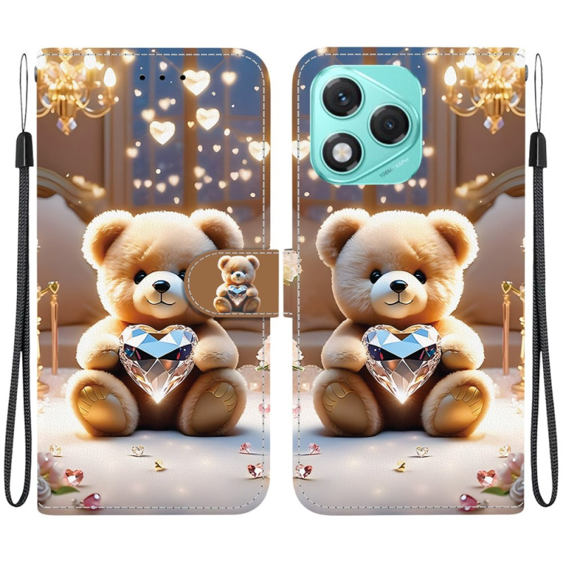 Étui portefeuille élégant avec support pliable et motif ours diamant pour Honor 400 Lite 5G. Comprend 2 emplacements pour cartes, compartiment à billets et dragonne détachable. Protection magnétique sécurisée contre les rayures et chocs.