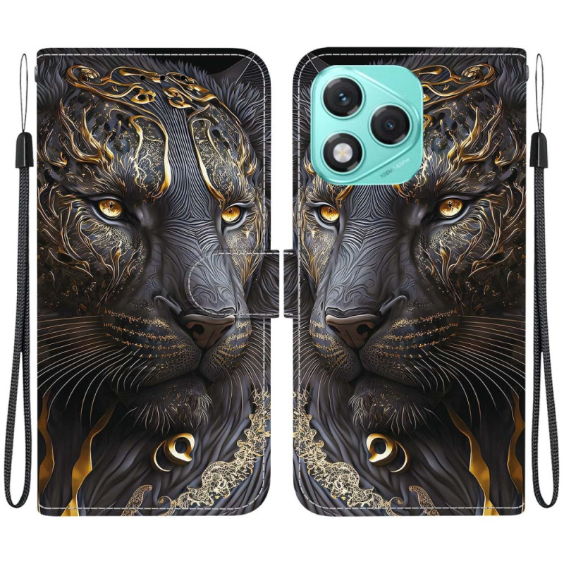 Protégez votre Honor 400 Lite 5G avec élégance grâce à cet étui portefeuille au design sophistiqué avec motif lion or noir. Doté d'un support pliable, de 2 fentes pour cartes et d'une dragonne pratique, il allie style et fonctionnalité...