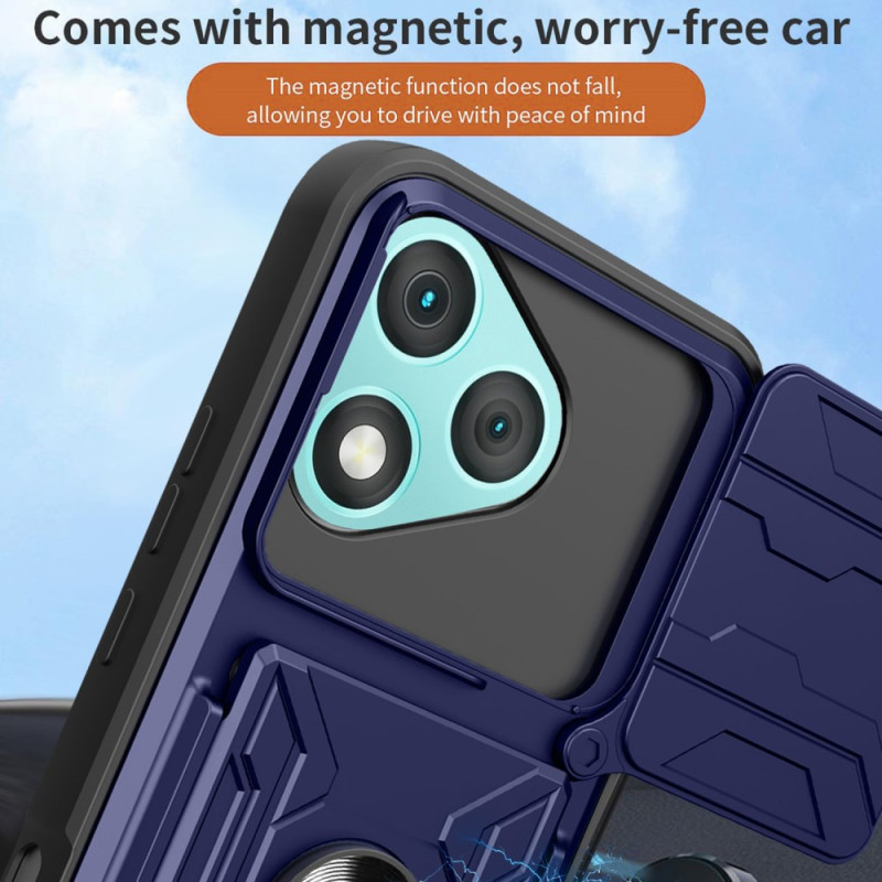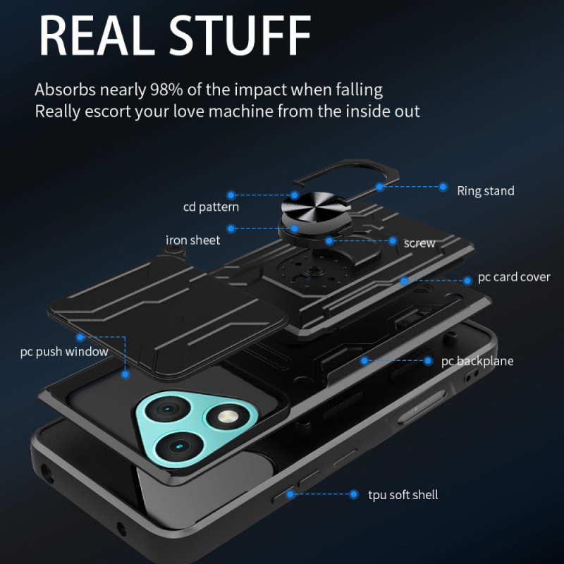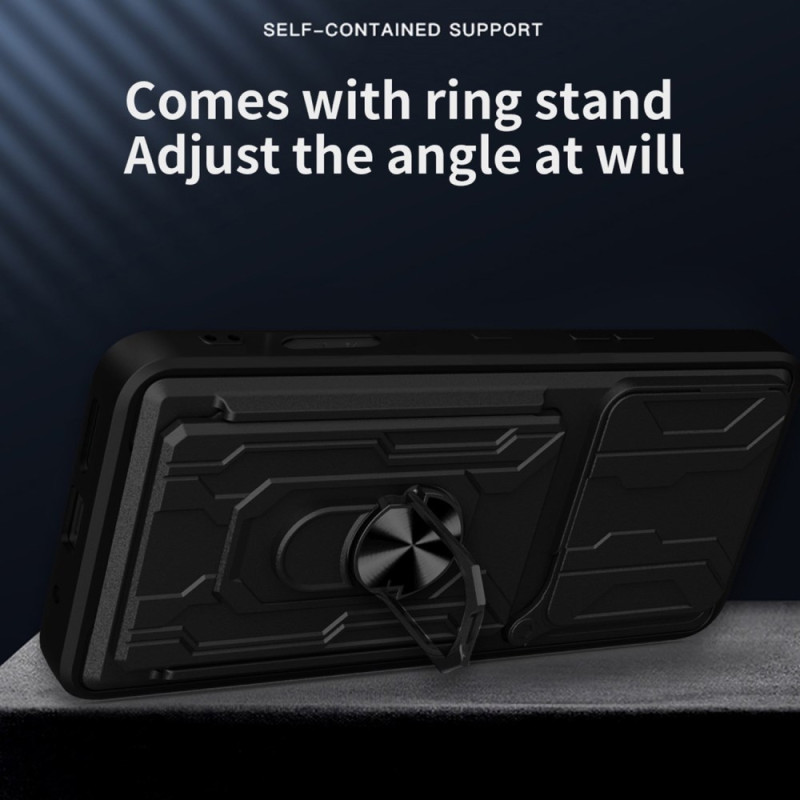 Coque robuste pour Honor 400 Lite 5G avec béquille métallique rétractable, protection caméra coulissante et porte-cartes intégré. Compatible support magnétique voiture. Protection renforcée contre les chocs et chutes.