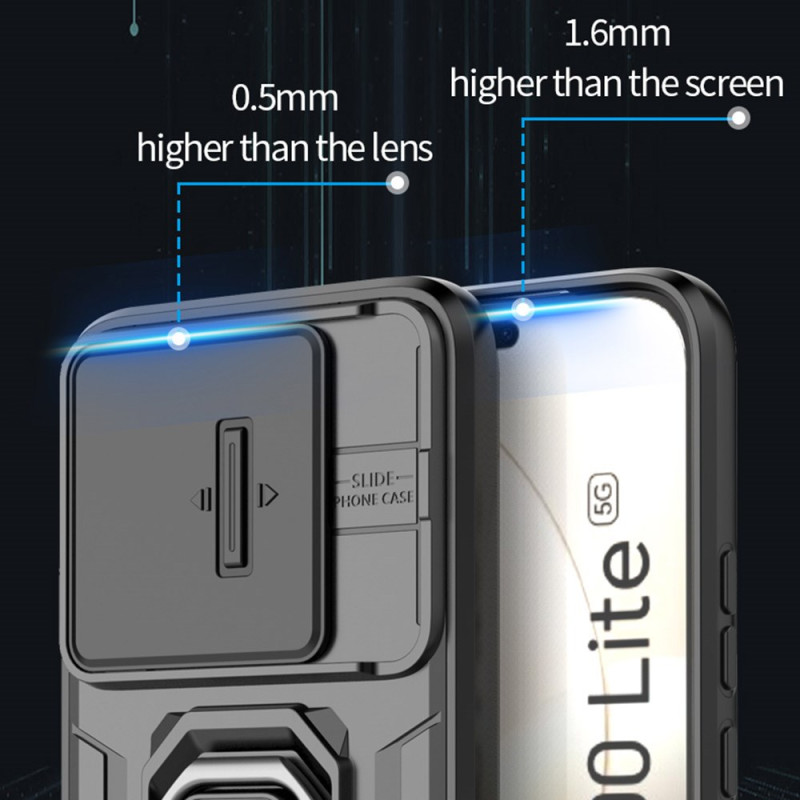 Protégez votre Honor 400 Lite 5G avec cette coque robuste dotée d'une béquille rotative intégrée et d'un cache objectif coulissant. Fabriquée en matériaux de qualité supérieure, elle offre une protection complète contre les chocs et les rayures tout en permettant un accès facile à toutes les fonctionnalités.
