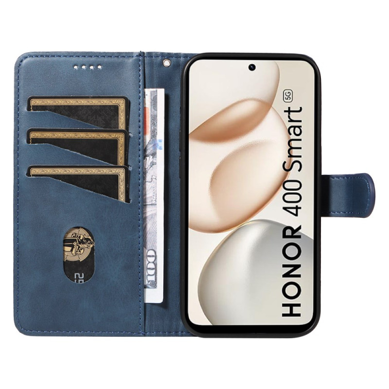 Découvrez notre étui portefeuille élégant et fonctionnel pour Honor 400 Smart 5G / 4G. Fabriqué en cuir PU texturé de haute qualité avec un intérieur en TPU mat, il offre une protection complète et un toucher agréable. Avec ses lignes en T imprimées, ses fentes pour cartes, son support intégré et sa fermeture magnétique, cet étui allie style et praticité pour une utilisation quotidienne optimale.