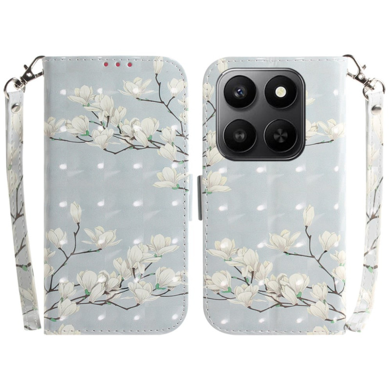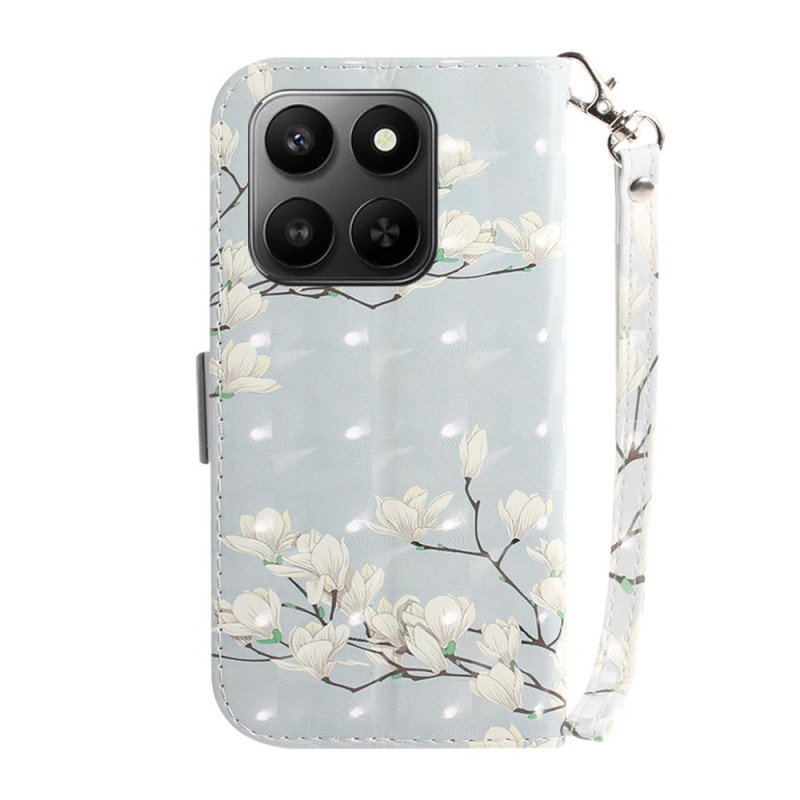 Protégez votre Honor 400 Smart 5G / 4G / X7d 4G avec élégance grâce à cet étui portefeuille sophistiqué orné d'un magnifique motif magnolia. Doté de fentes pour cartes, d'un support pliable et d'une dragonne pratique, il allie style et fonctionnalité au quotidien.